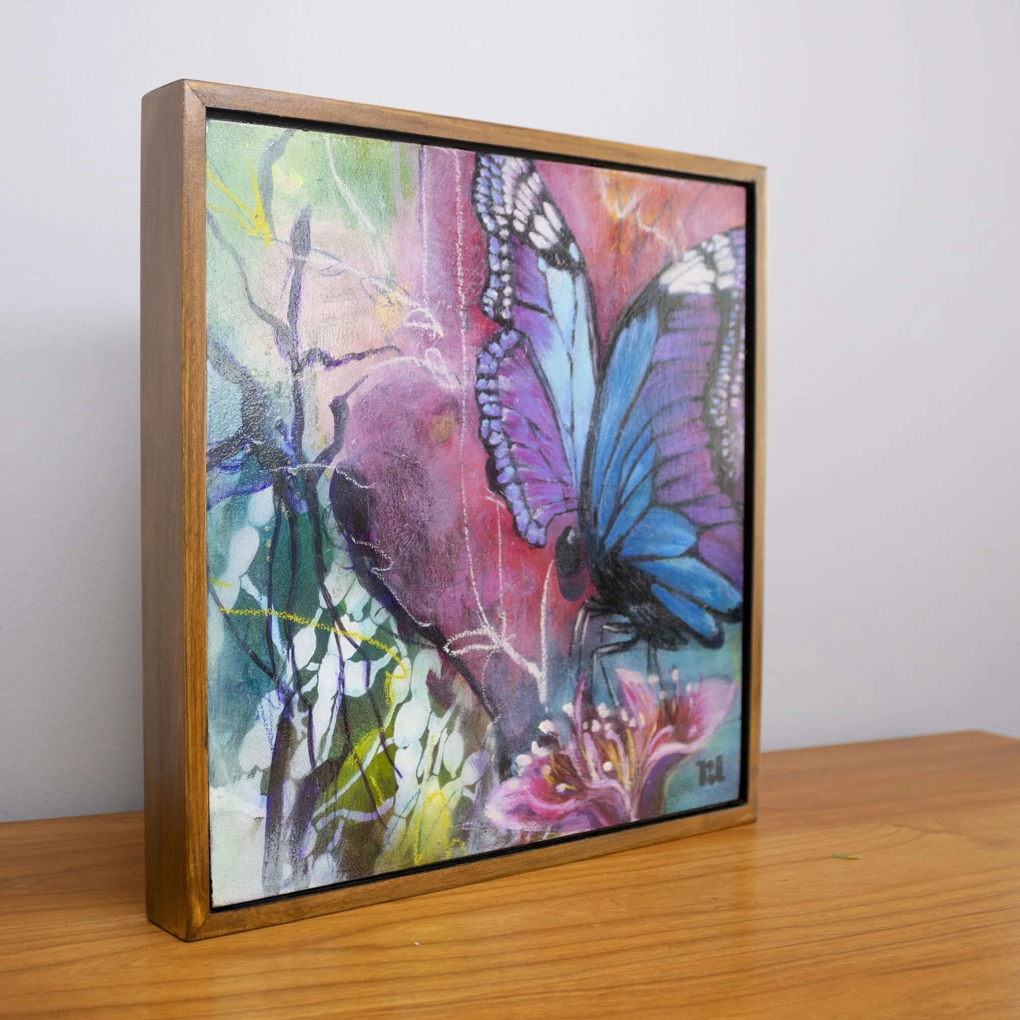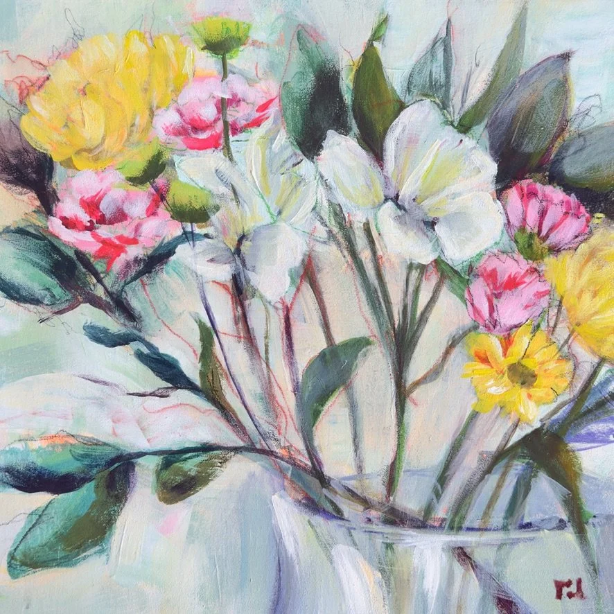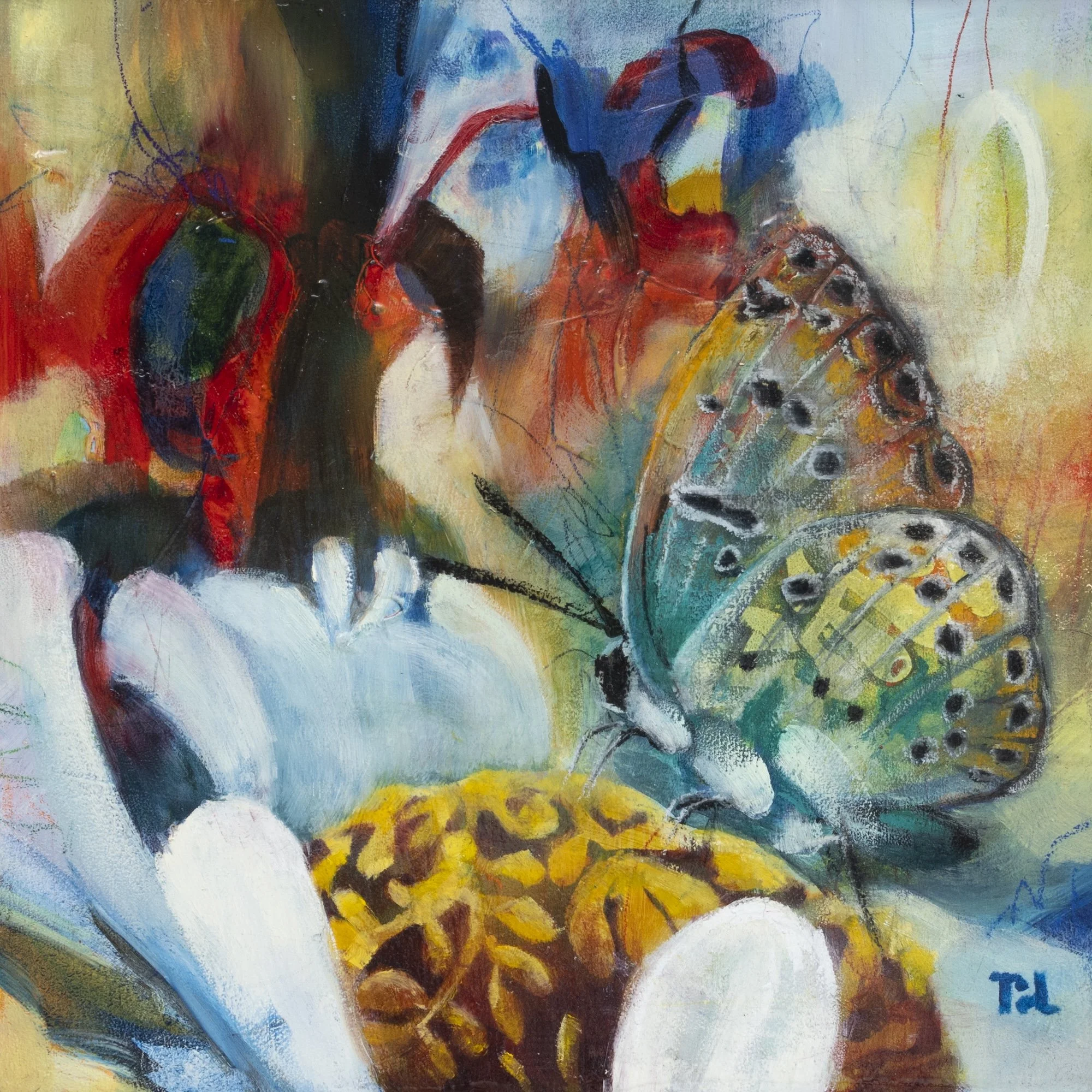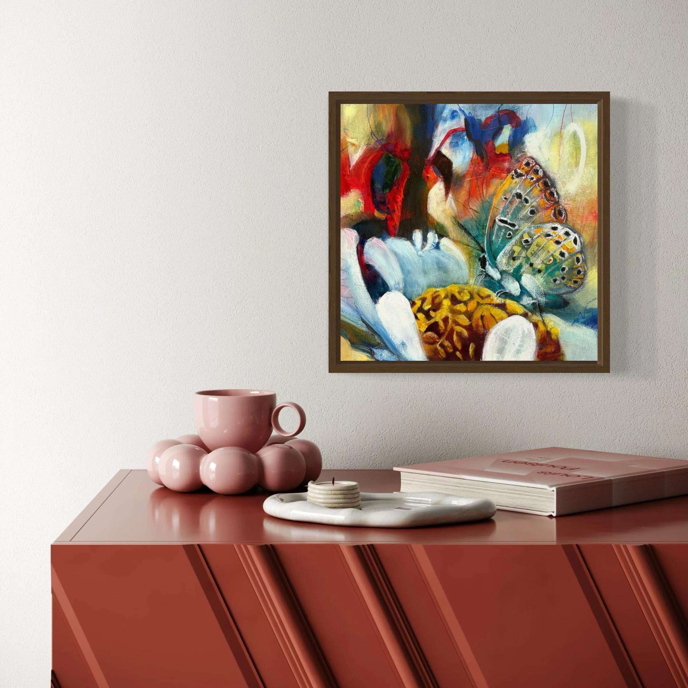 Below the Surface invites viewers into a luminous, underwater world where forms drift between abstraction and nature. Layers of oil and mixed media create fluid blues, greens, and coral tones that echo the movement of aquatic plants and hidden life. Its quiet sense of depth encourages a slower gaze, offering a moment of calm and discovery within a contemporary space.
