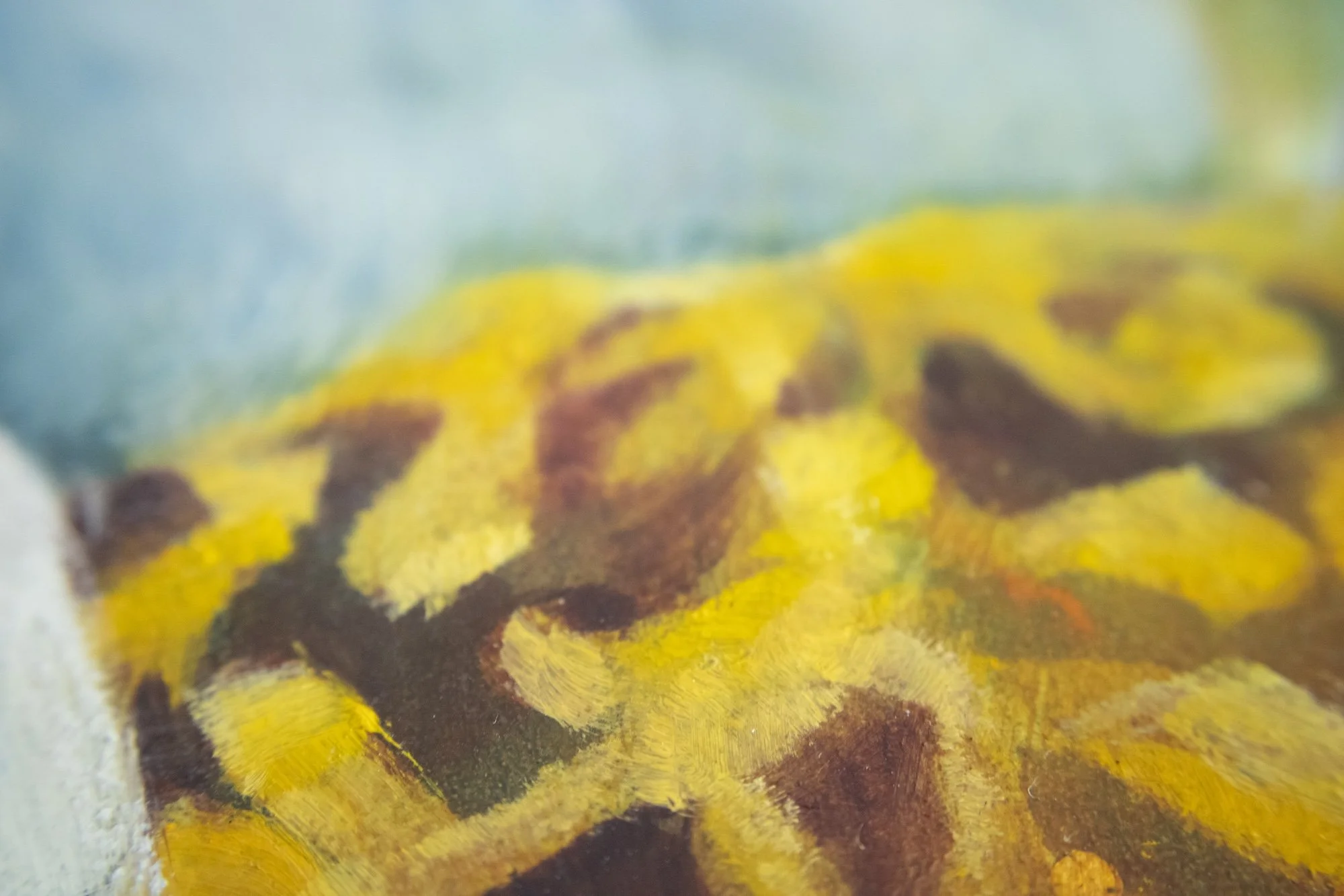 • To preserve the depth of color and texture, display your artwork away from direct sunlight, extreme temperatures, and high humidity.