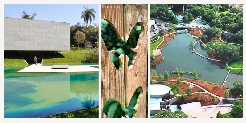 Fragments of places that shaped this series—Inhotim, a butterfly sanctuary in the Keys, and the sculpture garden in New Orleans. Not painted directly, but remembered differently